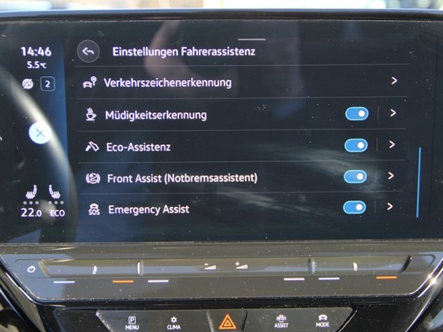 Rückfahrkamera; Spurwechselassistent; Mit Verkehrszeichenerkennung; Müdigkeitserkennung; Abstandstempomat ACC; Parklenkassistent; Einparkhilfe Plus vorn und hinten; Front Assist mit Citynotbremsfunktion; Area View; TRAVEL ASSIST
